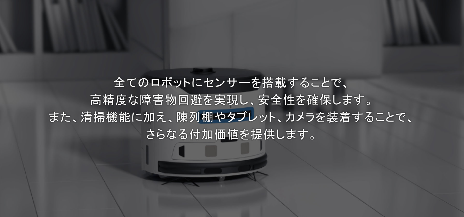 業務用ロボットとしてトップクラスのコンパクト設計が特長で、狭い通路や小規模施設でも活用いただけます。