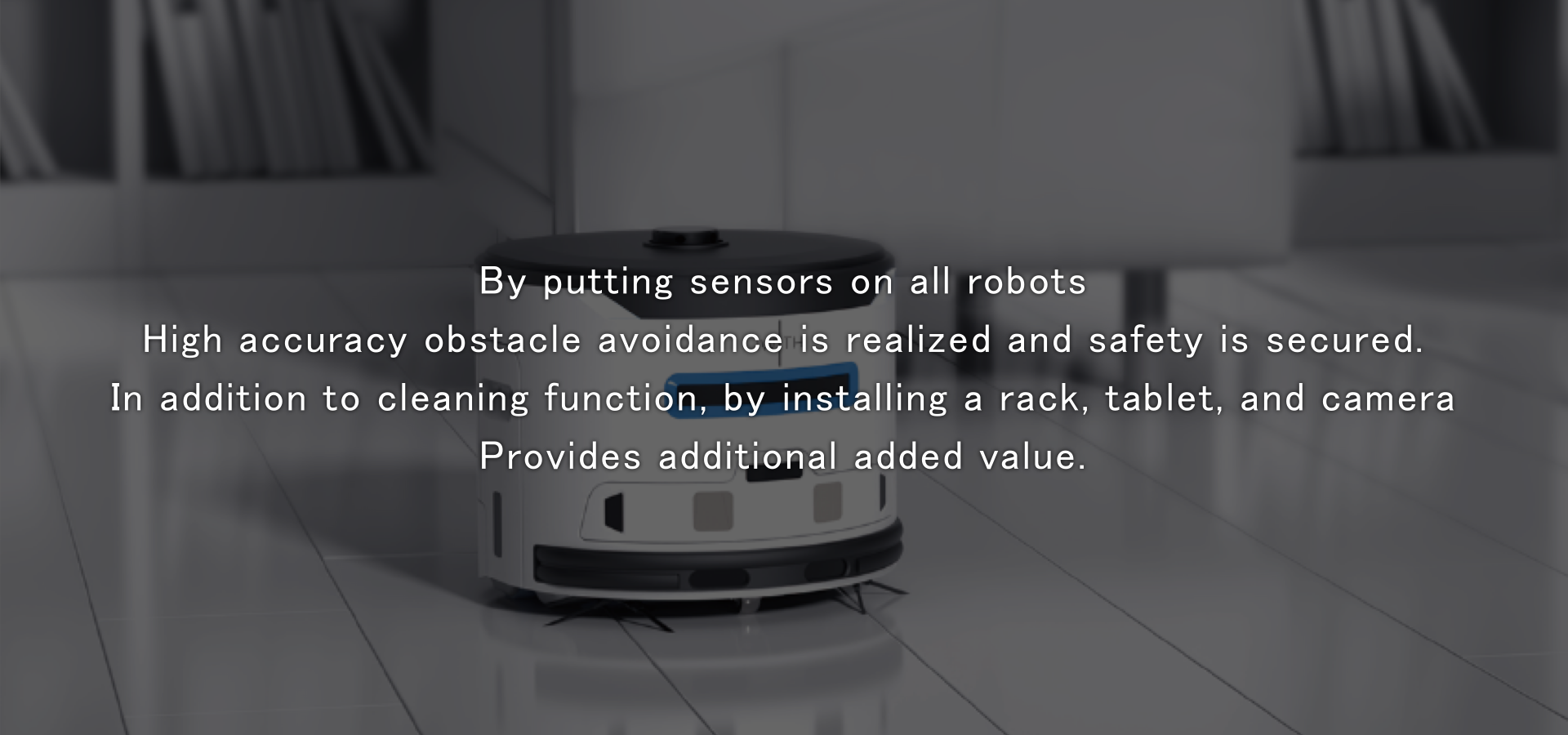 Base model J30 It is a multi function robot that adds extension and corresponds to various business needs. In addition to the cleaning function, you can carry out the product promo, the advertisement delivery, and the store circulation by attaching the shelf and tablet.