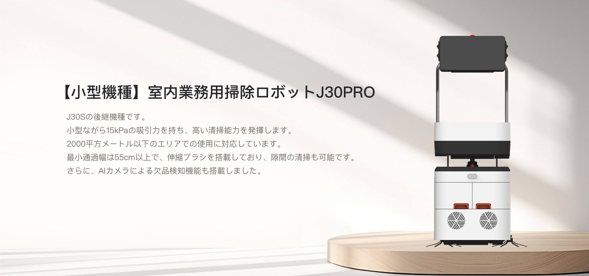 高い清掃能力により、オフィスや店舗、施設内の衛生的な環境を効率的に維持できます。業務用としても小型設計ながら、15kPaの強力な吸引力を備えており、水拭き清掃時にも水跡を残さず、床面をきれいに保つことが可能です。これにより、清掃作業の効率化だけでなく、スタッフの負担軽減にも貢献します。